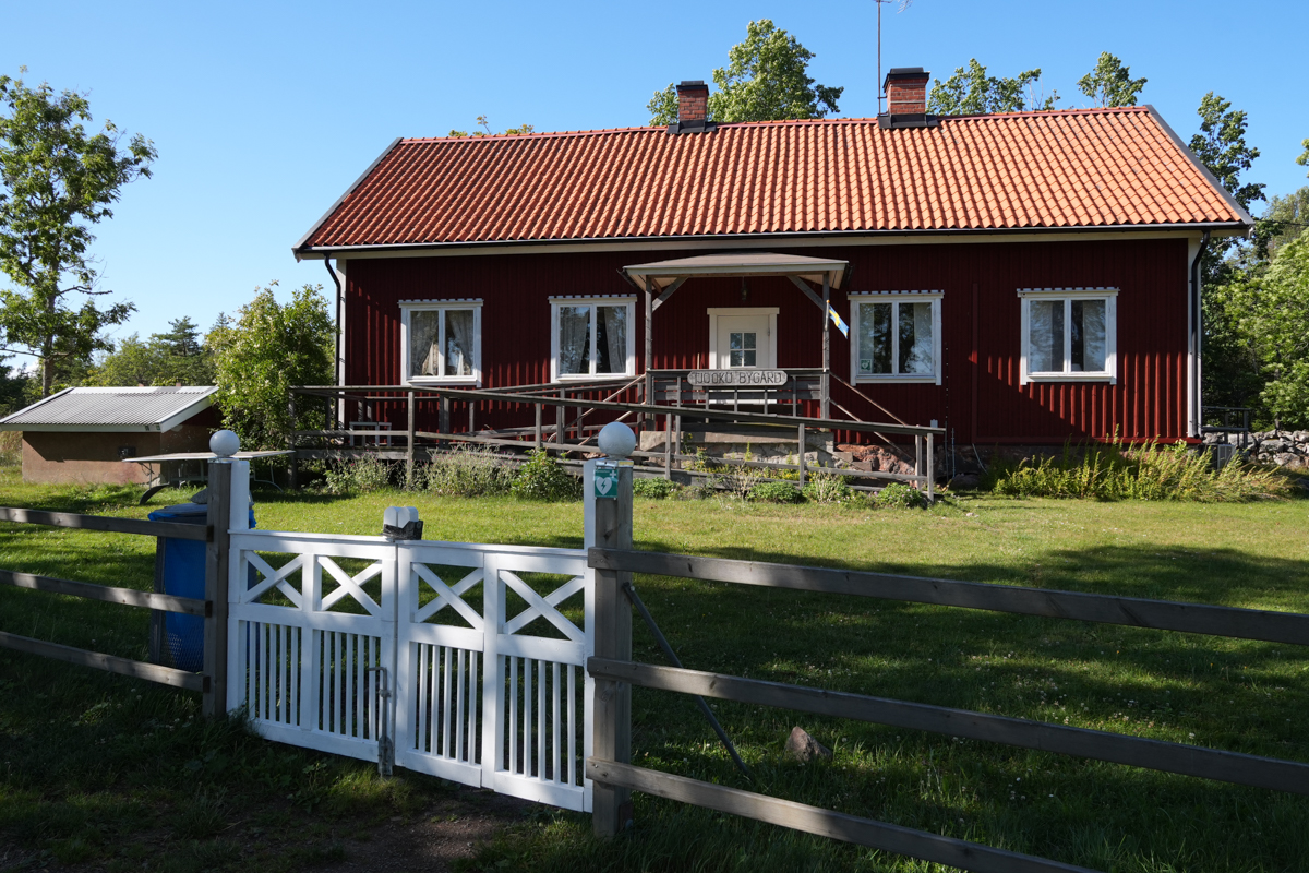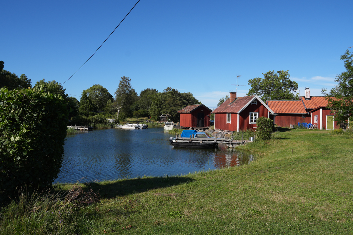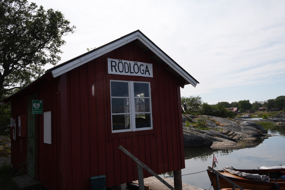Jag har aldrig varit här, men det har Reidar- säg var han inte varit i den här skärgården…. Vi åt en lite korvlunch, tog ett bad och sen promenerade vi på blåbärsstigar och klipphällar till byn och affären där vi köpte lite godis och A-fil för att fortsätta till Café Tränar för lite finfika – Bärpaj med vaniljsås och hembakad mazarin. Imponerande att man på den här ön inte har el men ändå kan driva både butik, bageri och Sveriges ostligaste bensinmack – Mycket imponerande.