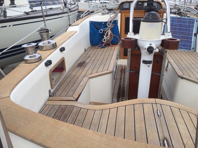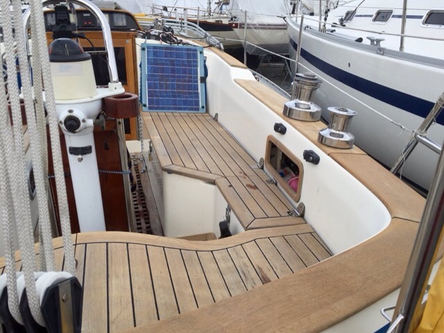 Började dagen med inköp av en stege på K-Rauta. Sedan ut till Svinninge. Började med en rejäl tvätt av teaken i sittbrunnen.