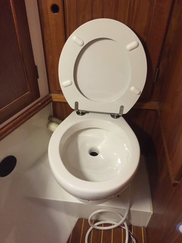 Denna skitsak. Vi saknade direkt den elektriska toaletten från förra båten. En Sanimarin 31. Så det fick bli en sådan igen, då den befintliga var svår att pumpa. Något knas i pumpstången.
