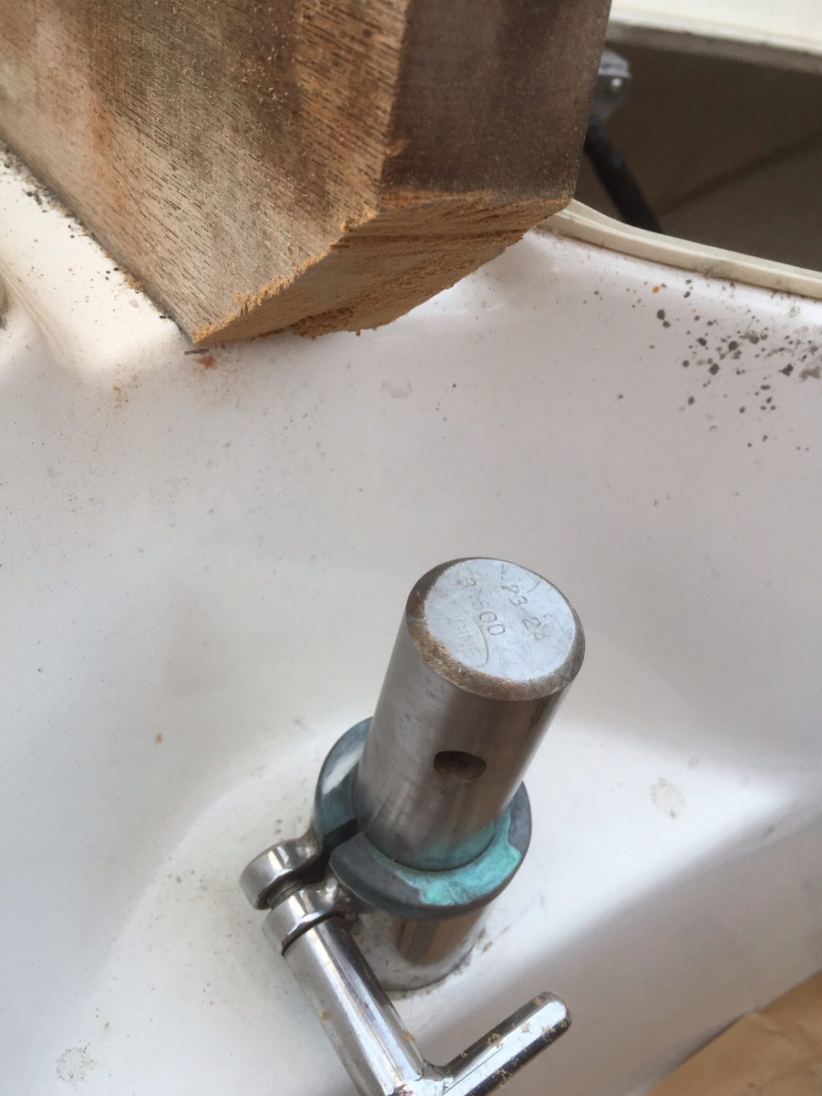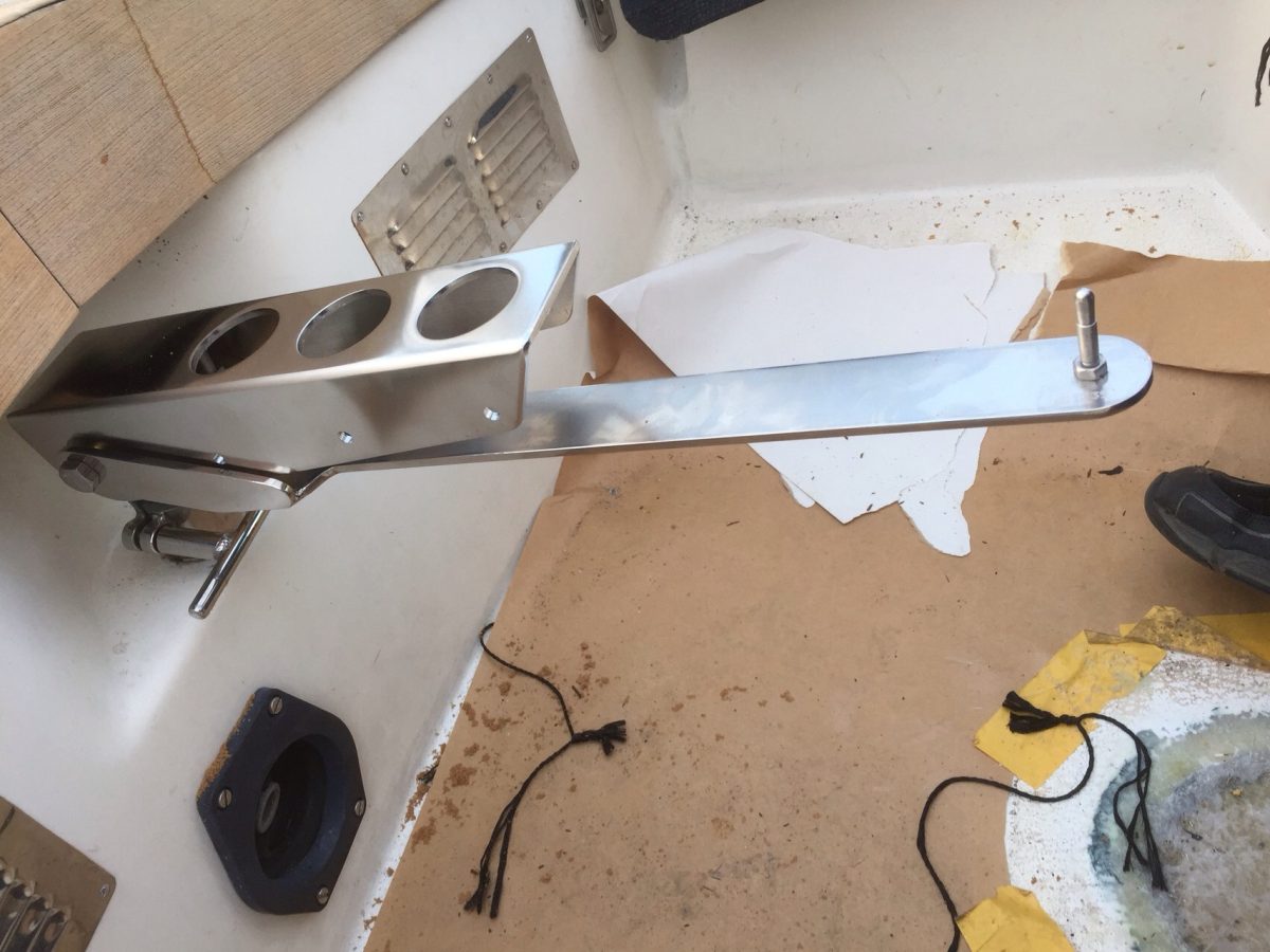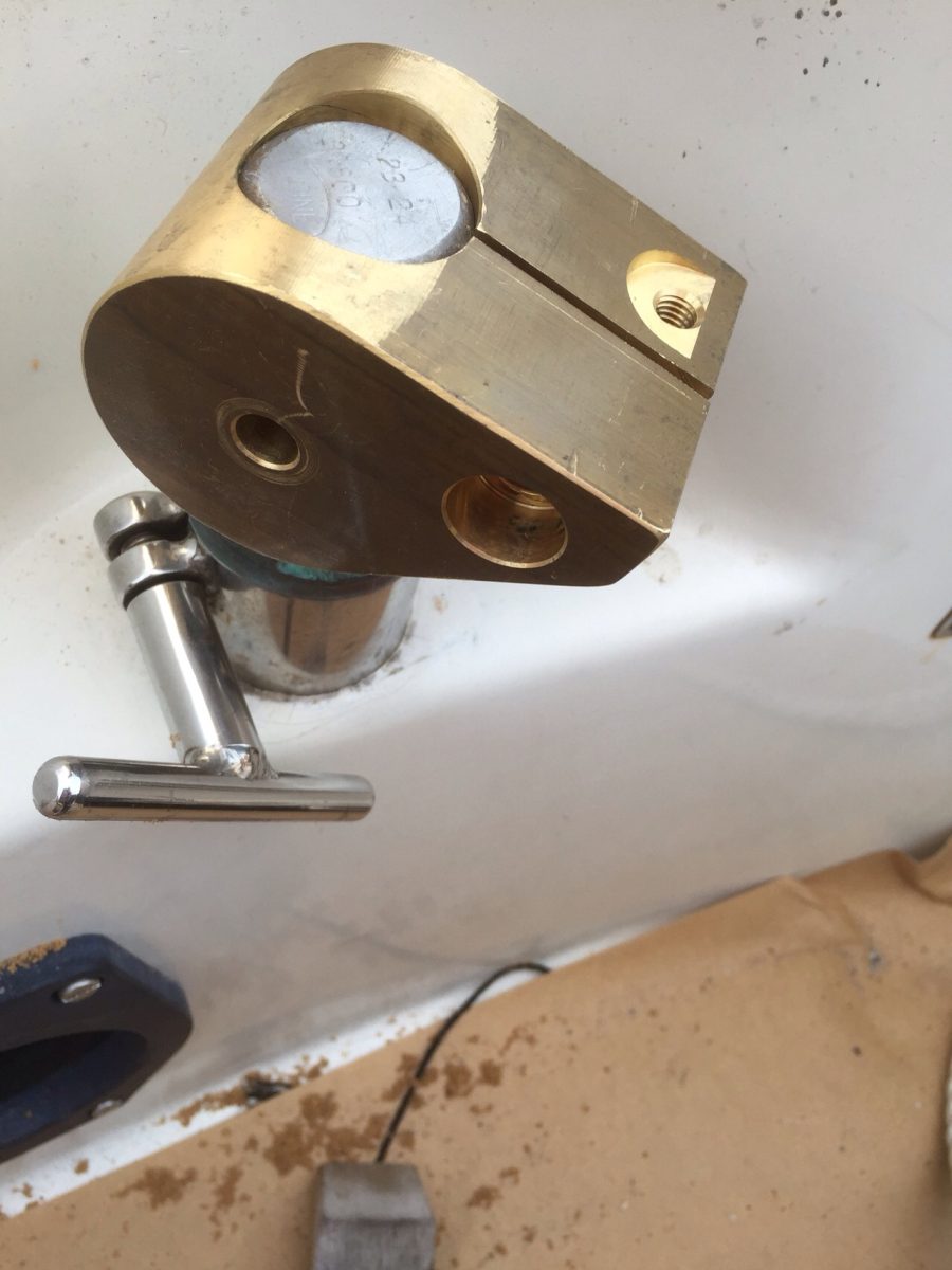 Sedan själva fästet för rorkulten. Som har en extra arm undertill för autopiloten. En Rosättra-special.