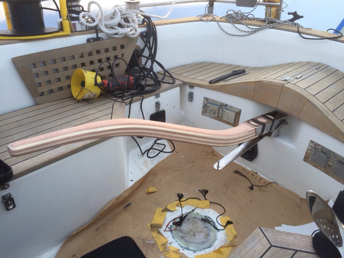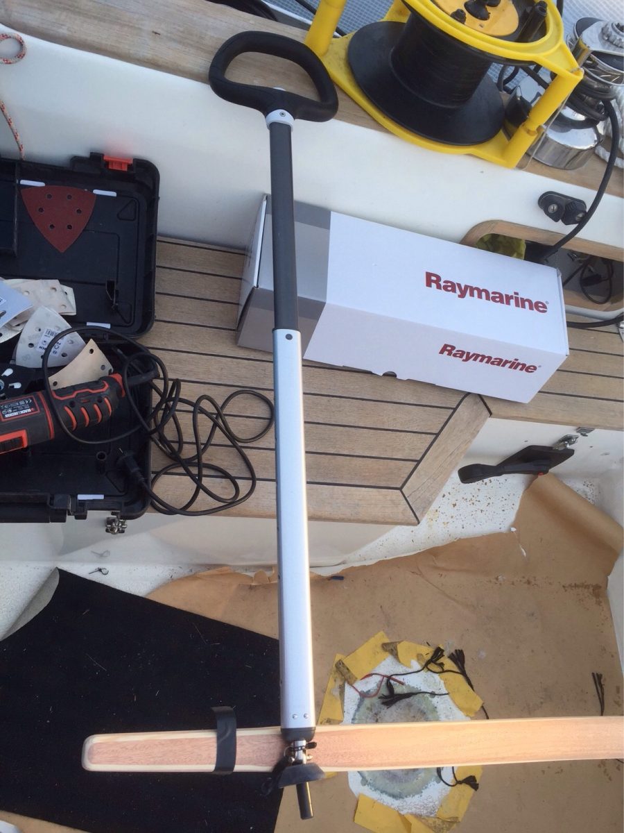 Tycker att Rosättra beslaget verkar mkt smidigt och bra för att skapa utrymme i sittbrunnen genom att fälla upp rorkulten. jag får bara inte ihop hur armen till ”autopilotsrorkulten” hamnar i rätt nivå och håller sig uppe.