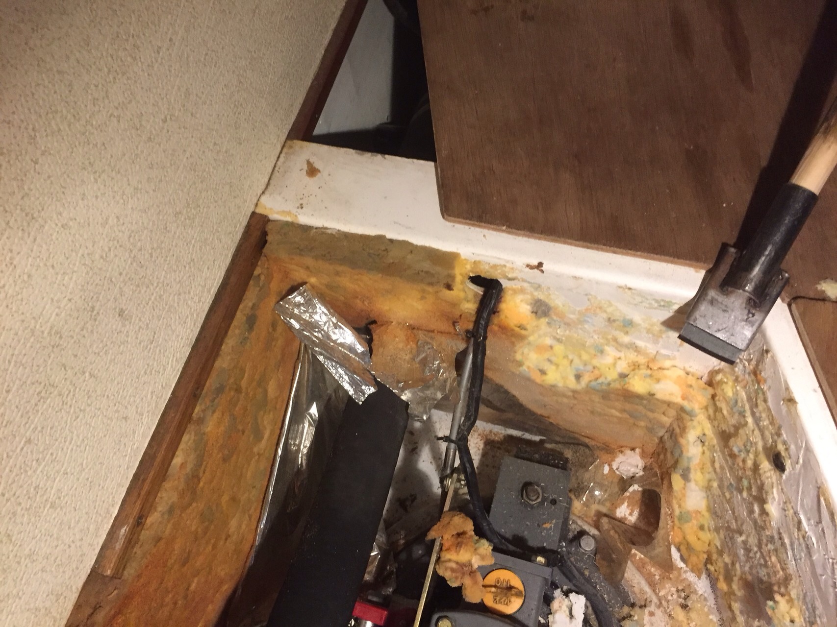 Den befintliga isoleringen satt limmad med massor av sikaflex. När isoleringsmattan väl var borta var det inte så svårt att skära bort sikan med Feinsågen med ett skrapblad men lite andra verktyg användes också. Allt från skrapor till stämjärn.