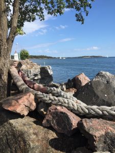 Fortsatt soligt och sydliga vindar. I dag hoppas vi på lite spinnaker-segling. Men så blir det inte. Vinden ligger för mycket på väst. När vi når Oxelösund så lockas vi av restaurangen i fiskehamnen. Vi gör ett kort stopp för middag och det är varmt och skönt i solen på uteterassen alldeles vid inloppet till hamnen.