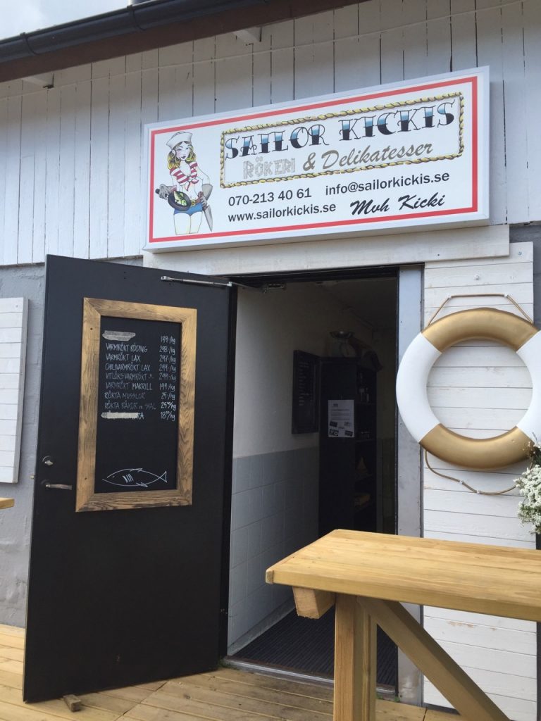 Vi tar en promenad bort till rökeriet och köper lite räkor och lax.