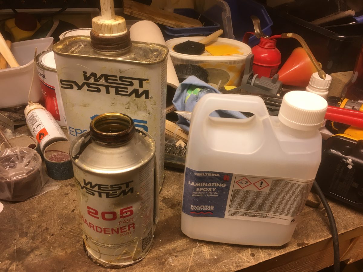 Jag använder alltid epoxi till sådana här jobb. Vidhäftningen är överlägsen polyester. Jag har sparat ett par dunkar som det varit West epoxi i. Men nu fyller jag dem med Biltemas Epoxi
