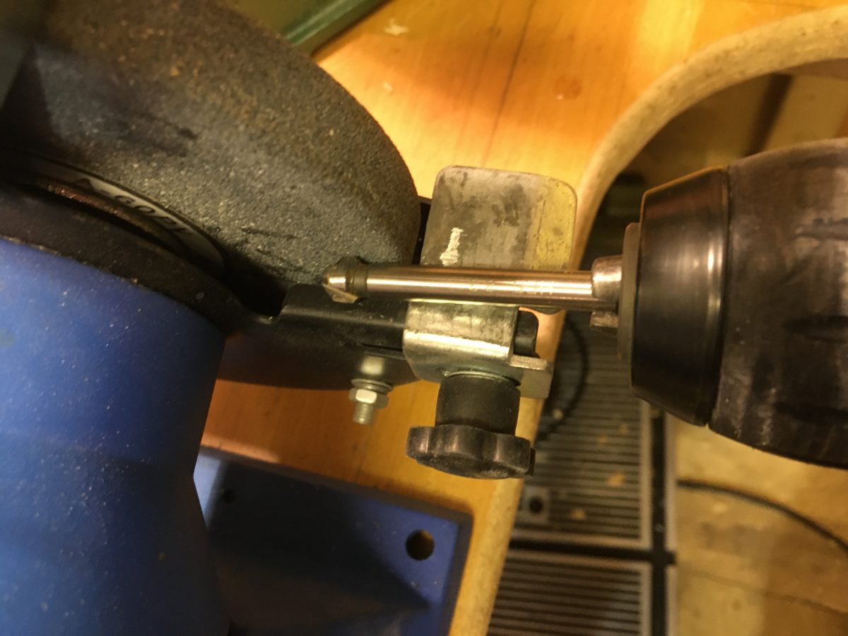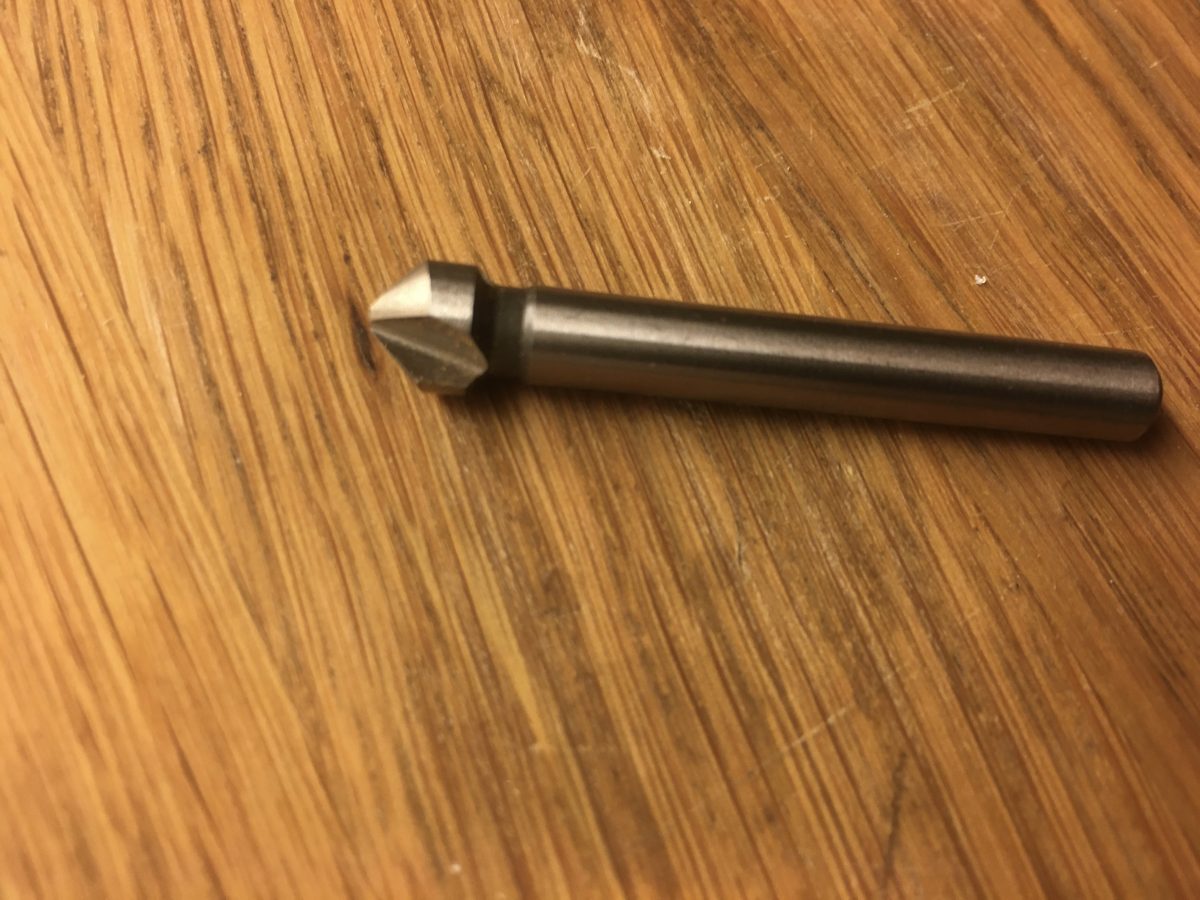 Jag köpte en sats med sådana försänkare från Biltema. En sats med 6 olika kostade lika mycket som en enskild försänkare i järnaffären. Problemet var att pluggen är 8mm och försänkaren var 8,3mm. Detta gav ett glapp när pluggen skulle ner i hålen. Så jag provade att slipa om försänkaren. Jag satte den i schucken på borrmasinen och körde den mot sidan av den fina skivan på en bänkslip. Efter lite försiktig putsning så är diametern nere i 8,01mm. Nu blir hålen perfekta för de nya pluggen.