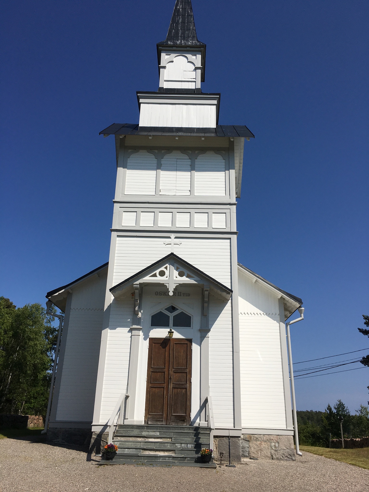 Vi längtar efter en lång-promenad efter mycket stillasittande. Vinden är i dag frisk no och vi kan få slör ner till Ornö. Vi har aldrig varit inne i viken vid Ornö kyrka så dit sätter vi kursen.
