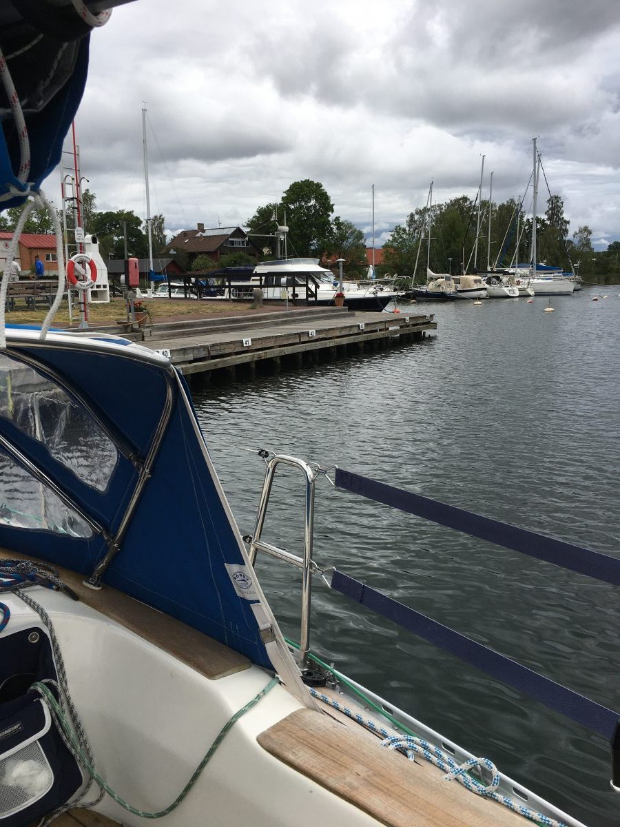 I Skutledens början har Shalom lagt till utmed en gammal kaj och vi smyger förbi, vi smyger oss genom hela leden för vi har lite missvisning på plottern märker vi så den här turen blir lite extra spännande. Vid badklipporna ligger redan små motorbåtar med badsugna men i själva leden är det lugnt på trafik och vi möter bara 3 -4 båtar vilket känns skönt då det är trångt om utrymmet så gott som överallt…