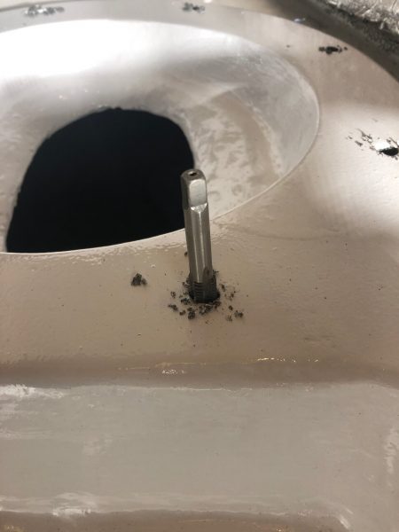 Jag börjar med att gänga om alla hål så ingen bult skall skära.