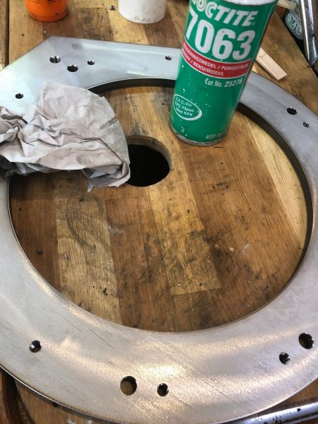 I dag fredag var det dags för nästa test. Alla bultar passar och jag bestämmer att det är dags att montera peramanent. Jag tvättar adapterns undersida med Loctite 7063 för att få bort allt fett
