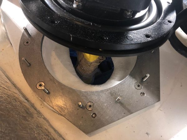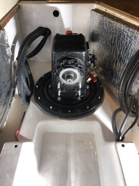 Adapterringen kom med posten i måndags. Den skall göra att Lombardinis drev går enkelt att montera på en Yanmar-bädd Utan ingrepp i plasten
