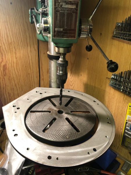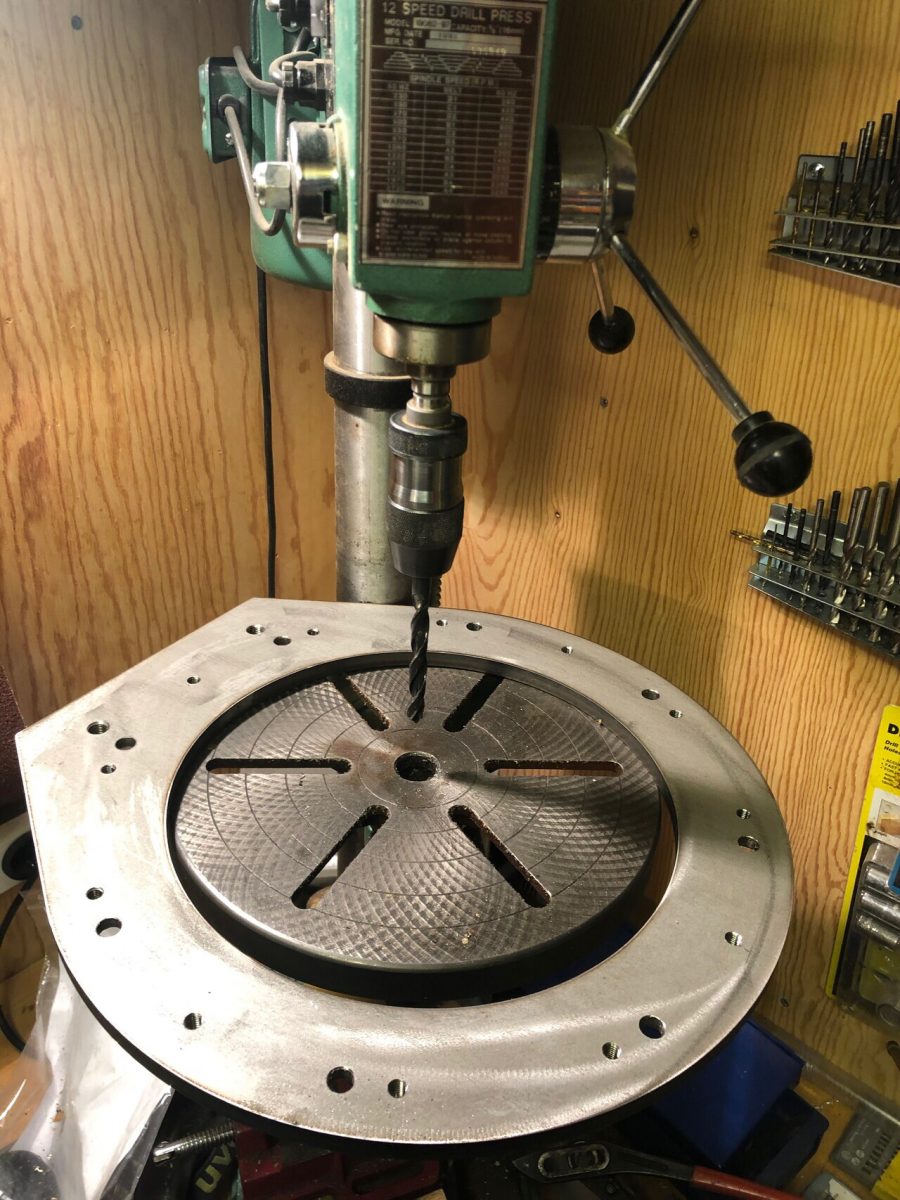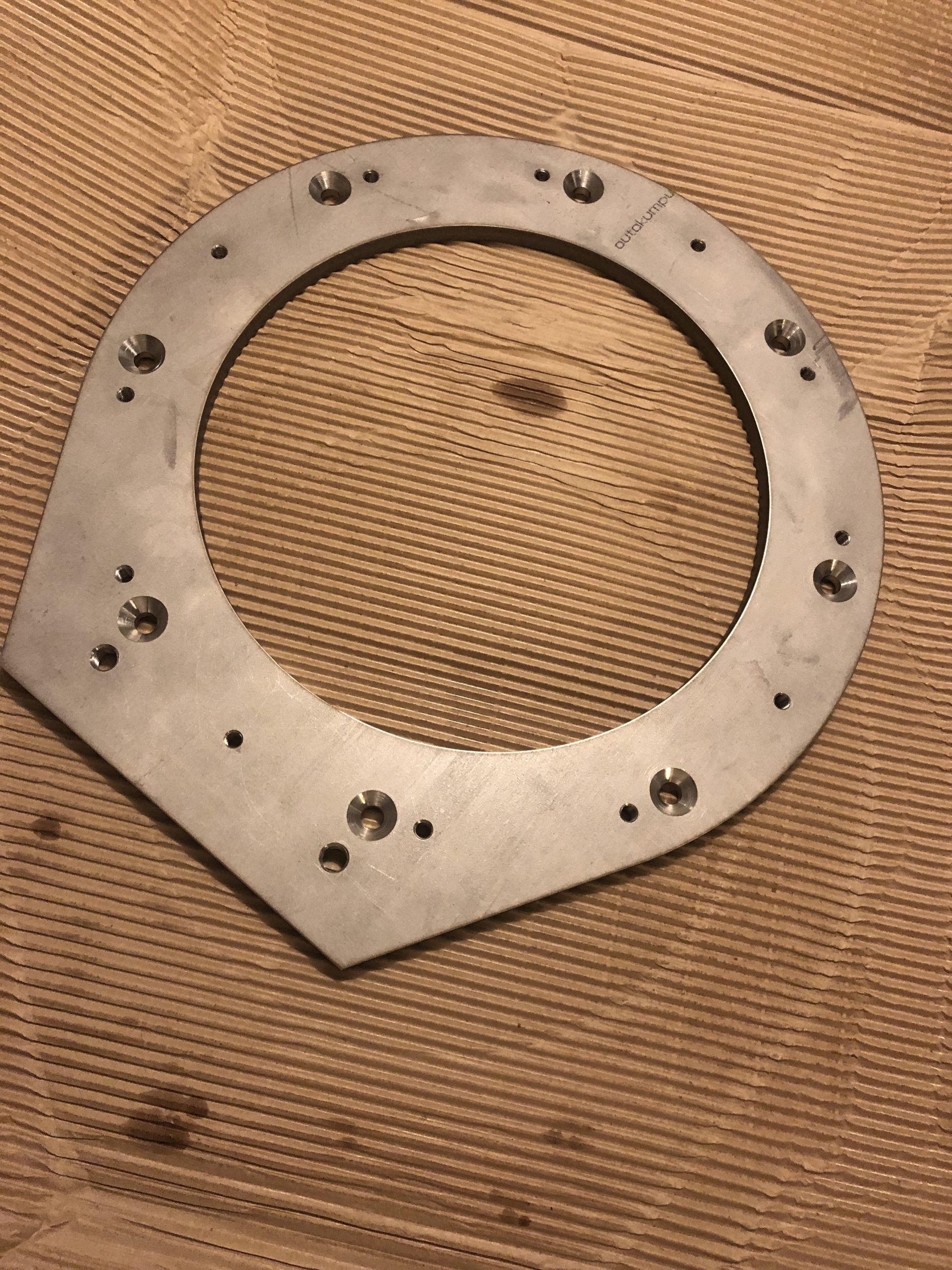 Ringen passar men några mått har lite för liten tolerans. Hålen för M10 bultarna är 10,2mm vilket är lite tight. Jag provar med alla skruvar i-gängade men bestämmer mig för att ta hem adaptern och borra all hål 10,5mm.