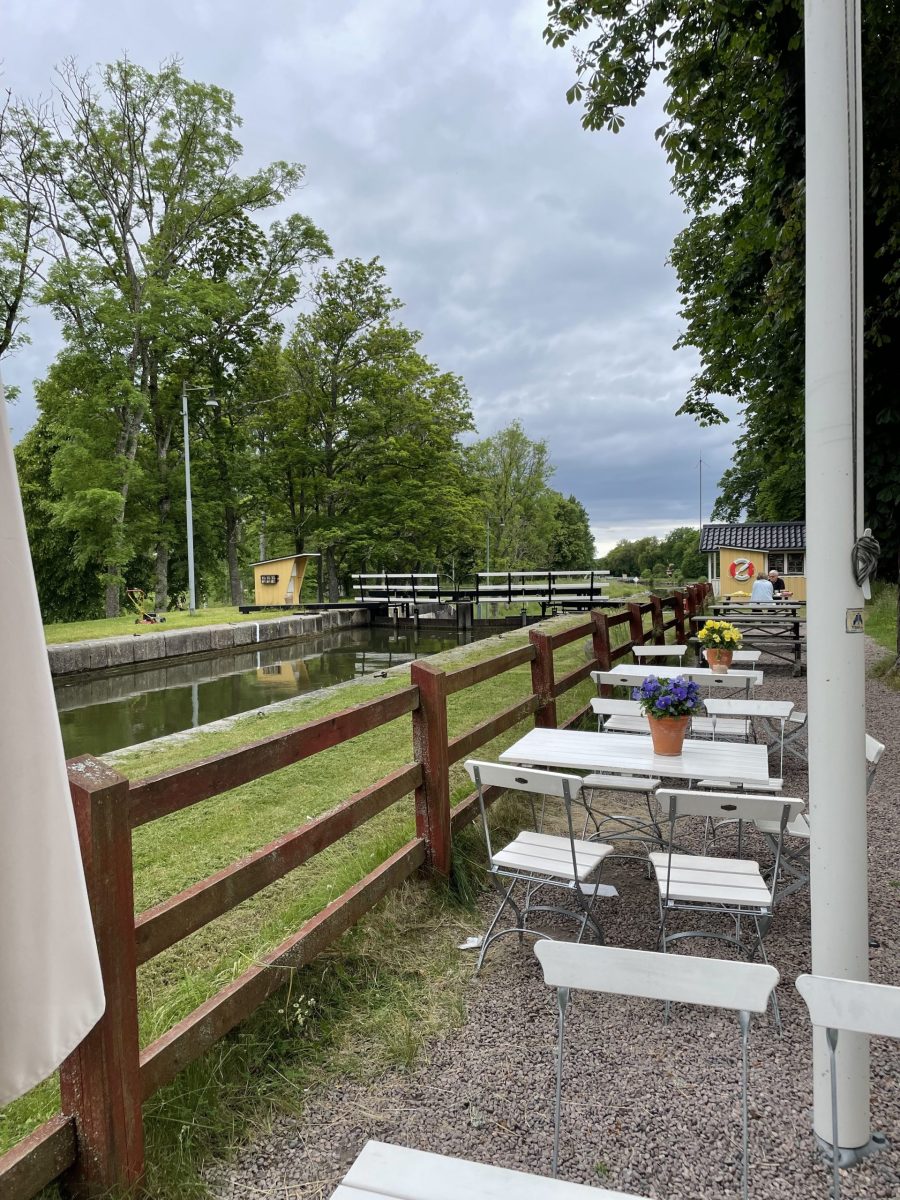 Det blev nästan en liggedag i Töreboda. Vi är visst lite lata av oss, det är sällan vi är vakna före halv åtta och då är många i båtarna runt oss på G, kanske är det för att vi är nya pensionärer och inte riktigt insett att vi inte är arbetande människor på semester riktigt ännu, eller så har vi den dygnsrytmen helt enkelt. Vi kanske aldrig blir så där pigga att vi vaknar klockan 6 och bara spritter av energi att ta tag i dagen…. vem vet? Inte är det jag i alla fall…