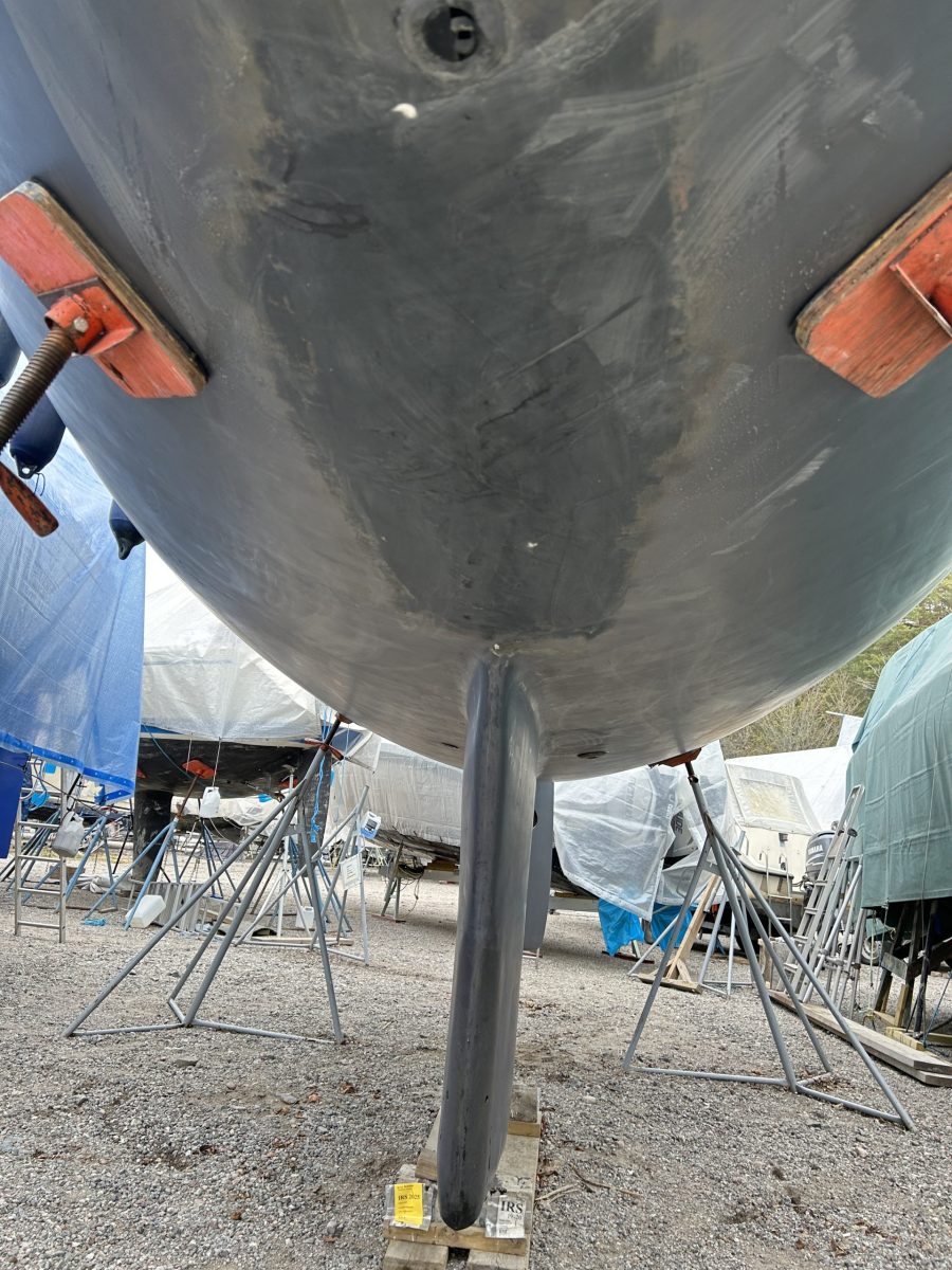 Hela reparatilnsområdet målades några dagar senare med VC-Tar2, som är den grundfärg botten har sedan tidigare. VC-Taren slipades med 180, 240 med maskin. Därefter 240 och 500 vattenslip. Det här området får ingen bottenfärg utan jag skall se hur mycket det växer på slipad VCTar.