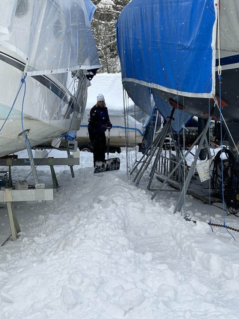 För några veckor sedan såg det ut så här runt båten med snö som behövde skottas.