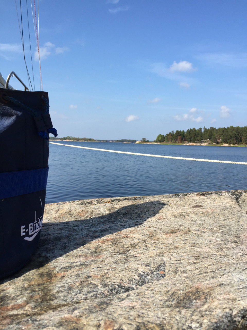 Tisdagsmorgonen började som vanligt med- bad, frukost och bad innan det blev kanalfärd, bropassningar och en fin kryss ner mot Kapellskär och vidare till Blidö där vi hittade en för oss ny vik Söderfladern– sedan vi först tänkt oss till Stämmarsund men ångrade oss när det dels var moringslinor dels kostade 280 kr för att ligga där.