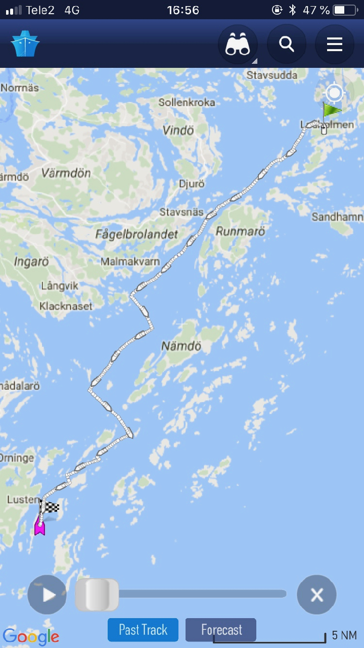 Jag hoppade på i Furusund på fredagskvällen den 27 Juli– Tack Micke och Theo för skjutsen.
