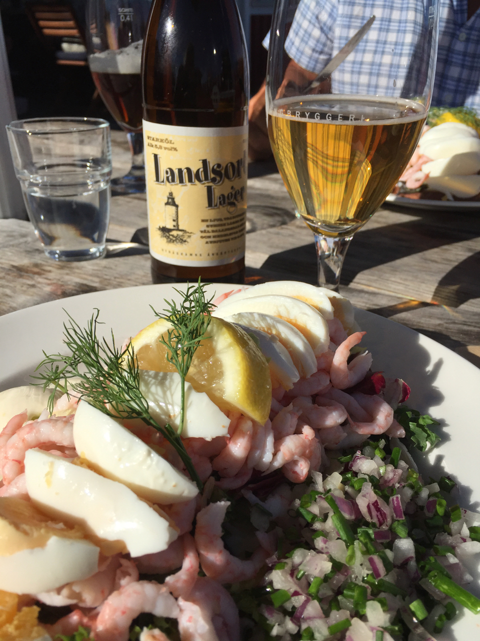 På Fredagen fick vi kryssa över Mysingen förbi Utö ner till Nynäshamn, vi behövde handla lite ny mat och eftersom de har mack där var det lika bra att börja med att tanka… killarna och tjejerna som jobbar på den macken var mycket serviceinriktade- killen som hjälpte oss berättade att det här var sista helgseglingen i sommar för många…. han verkade tycka att det var lite trist. Innan vi gick till coop stannade vi till vid en av restaurangerna på kajen och intog varsin obligatorisk räkmacka som serverades med lokal dryck- mycket gott- på restaurangen bredvid soundcheckade ett band- det förbereddes för trevligheter i hamnen på fredagskvällen.