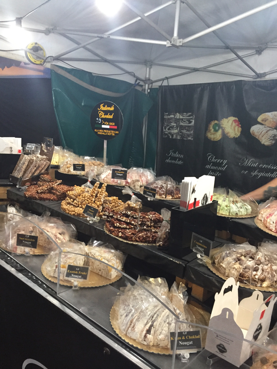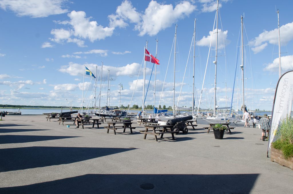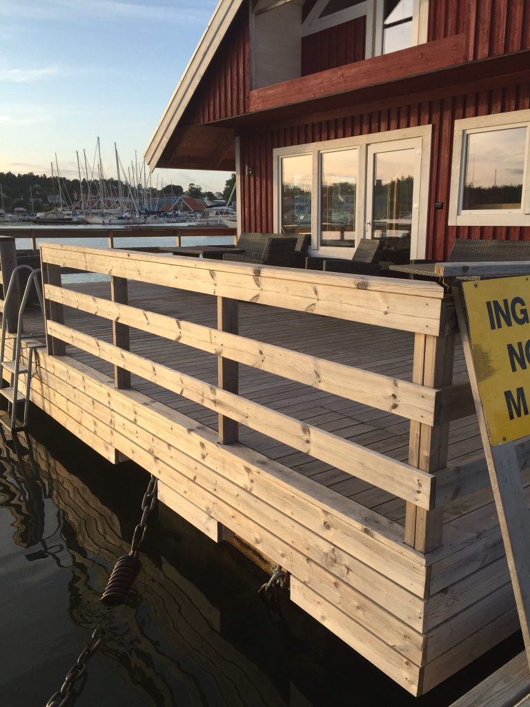 På Fredagen fick vi kryssa över Mysingen förbi Utö ner till Nynäshamn, vi behövde handla lite ny mat och eftersom de har mack där var det lika bra att börja med att tanka… killarna och tjejerna som jobbar på den macken var mycket serviceinriktade- killen som hjälpte oss berättade att det här var sista helgseglingen i sommar för många…. han verkade tycka att det var lite trist. Innan vi gick till coop stannade vi till vid en av restaurangerna på kajen och intog varsin obligatorisk räkmacka som serverades med lokal dryck- mycket gott- på restaurangen bredvid soundcheckade ett band- det förbereddes för trevligheter i hamnen på fredagskvällen.