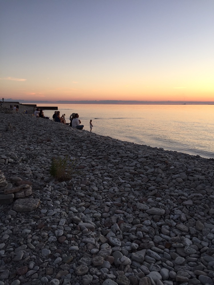 Vi tog en liten promenad på klipporna och in i skogen, men hittade ingen bra stig att följa och insåg att det fanns hus ganska nära- men en fin kväll fick vi och så småningom en fin solnedgång