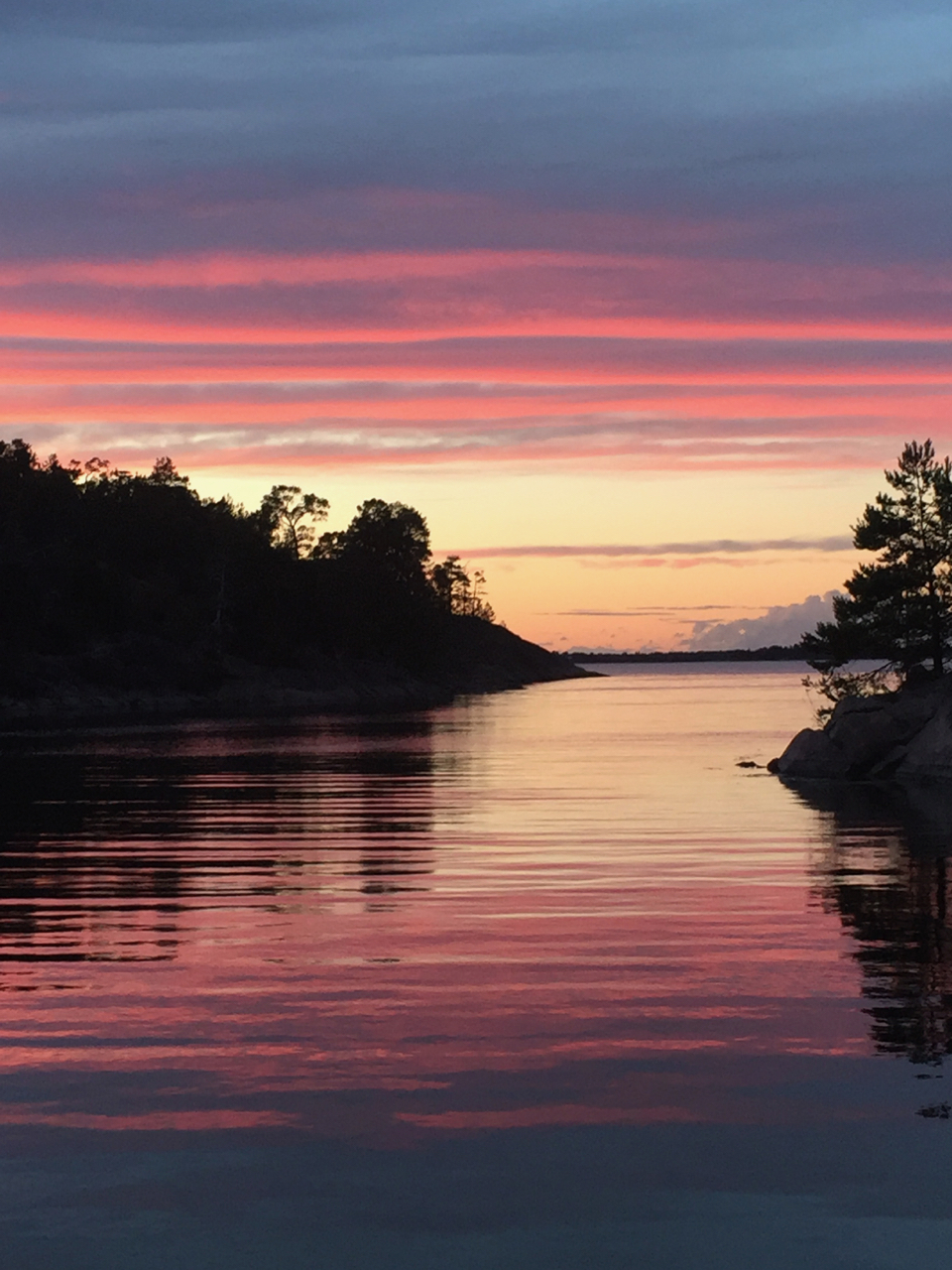 Tisdagsmorgonen började som vanligt med- bad, frukost och bad innan det blev kanalfärd, bropassningar och en fin kryss ner mot Kapellskär och vidare till Blidö där vi hittade en för oss ny vik Söderfladern– sedan vi först tänkt oss till Stämmarsund men ångrade oss när det dels var moringslinor dels kostade 280 kr för att ligga där.