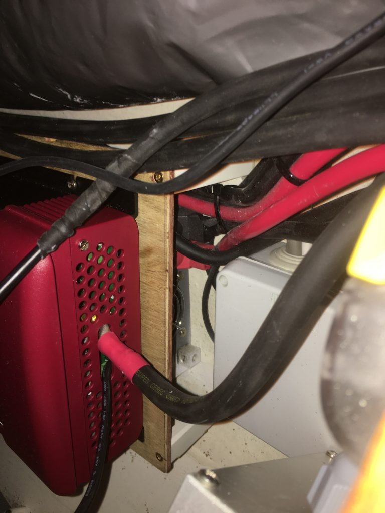 Bästa platsen för montering var i facket framför batterierna. Där satt redan den vanliga batteriladdaren och invertern samt lite annan el.