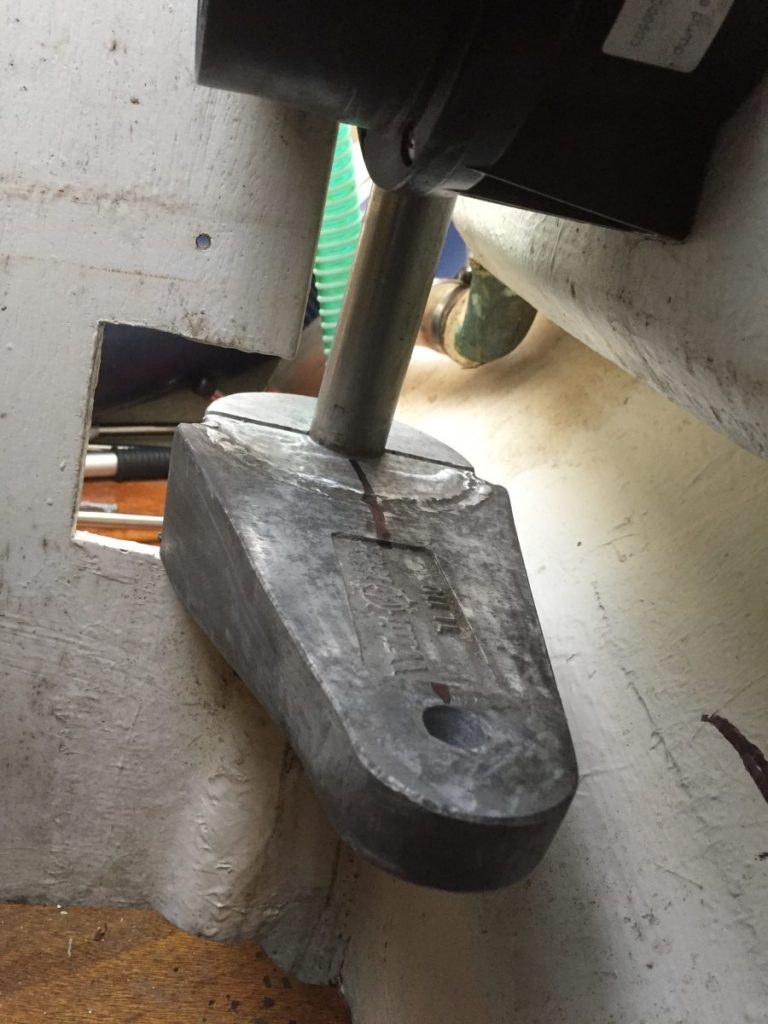 Efter upptagningen i år så fick jag bekräftat det jag mistänkt i slutet av säsongen. Roderlagret var trasigt. Detta måste ha hänt i samband med min ”draggning” i juli då rodret stod fast i botten. När man vred på roderbladet så kännde man att det hackade och bitvis gick trögt.