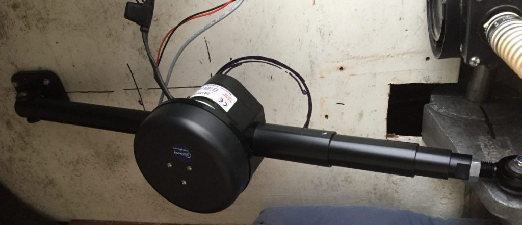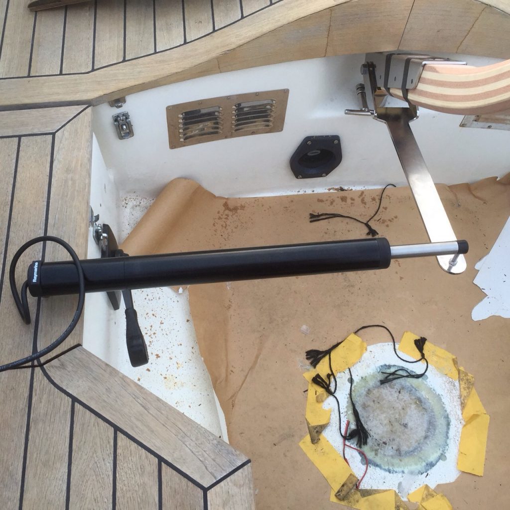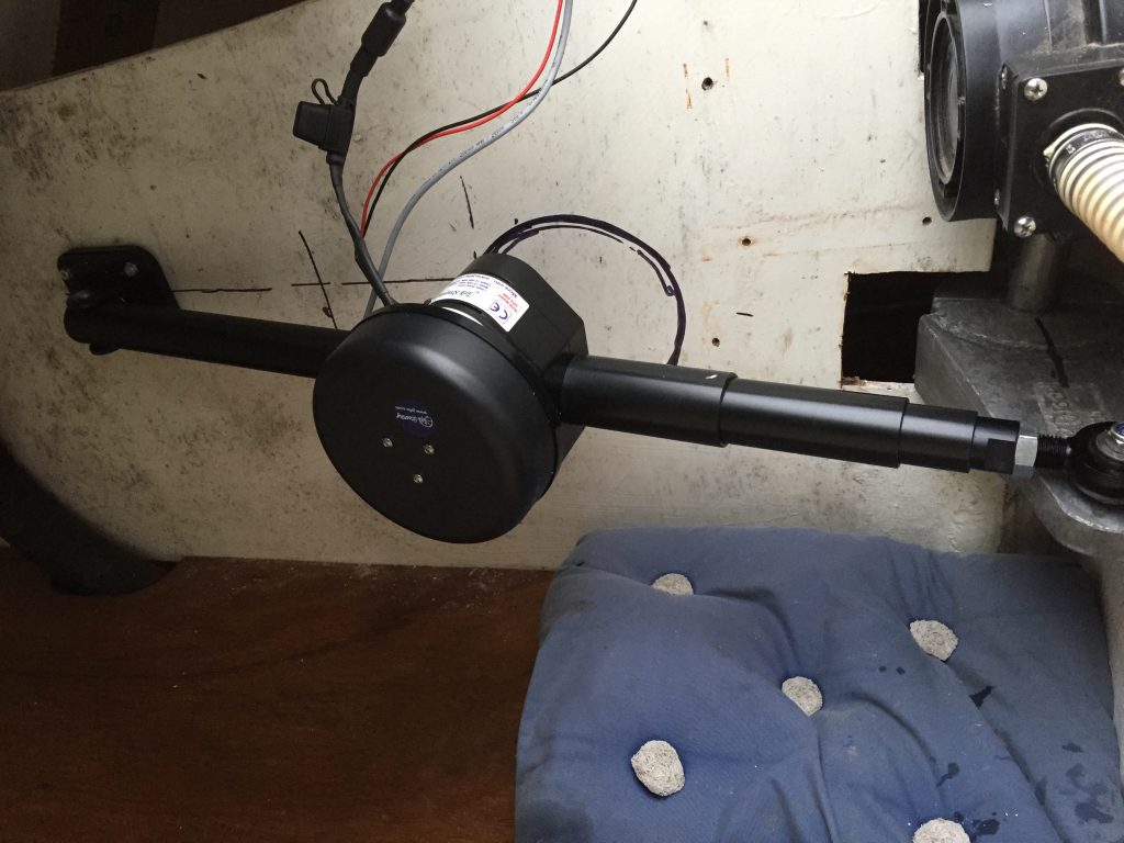 Men det är ändå lite pyssel att ta fram drivenheten, montera och koppla in kabeln varje gång man vill använda den. Jag hade därför mer och mer funderat på en drivenhet som sitter direkt på roderaxeln under däck. Min seglarkompis i en annan Linjett 35 har gjort så och är mycket nöjd. Bara att trycka på Auto då man vill aktivera den och Standby när man vill styra själv. Den har i inaktivt läge så låg friktion så man märker inte att den finns där.