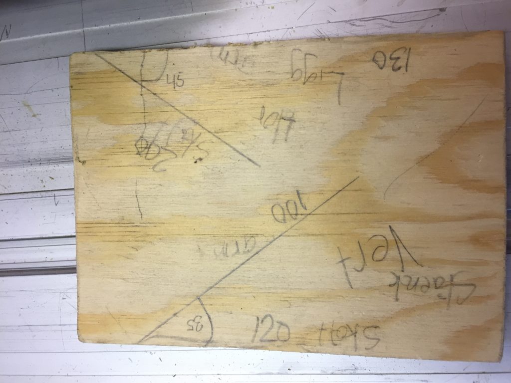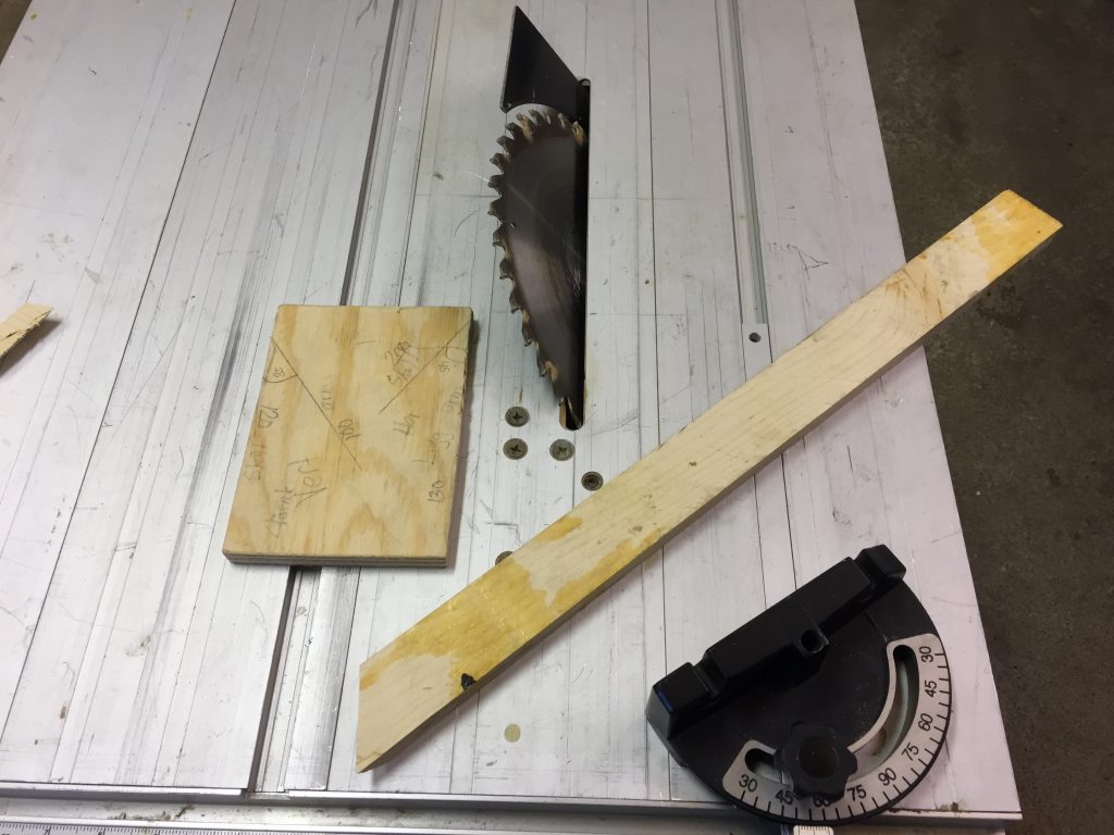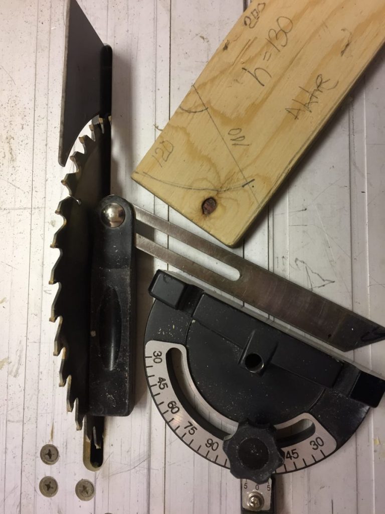 När jag hade mätt upp vinkeln mellan kvadranten och skotten så skulle de vinklarna överföras till den limmade biten