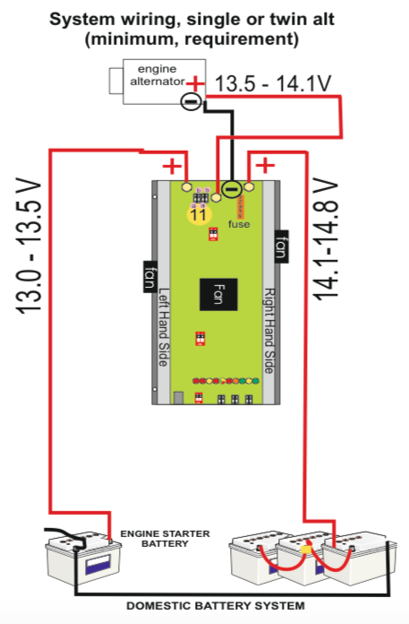 Ja! Laddningen har blivit bättre. Högre ström och högre spänning under längre tid. Detta gör att batterierna återladdas fortare. Förbrukarbanken är 5x 80Ah Tudor Marine och Startbatteriet är 1x80Ah.