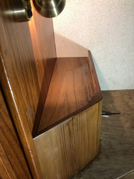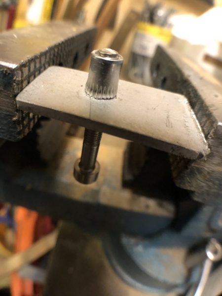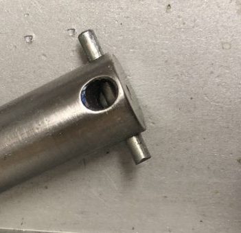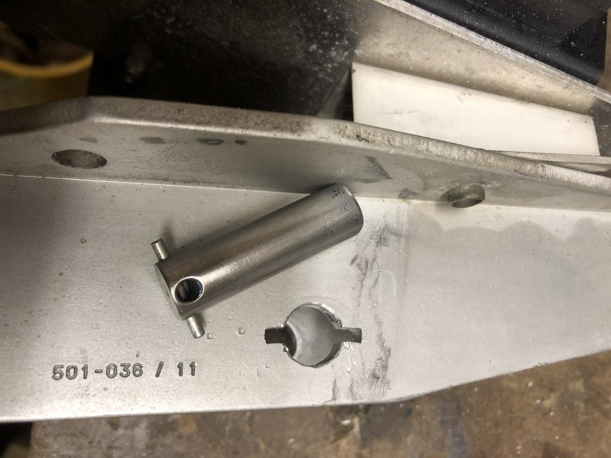 Nu fanns ett spår för den lilla sprinten som gör att riggbulten inte kan rotera utan trissorna kommer garanterat att snurra runt axeln. Riggbulten kapades i andra änden så att den blir exakt lika som bredden på masttoppsbeslaget.