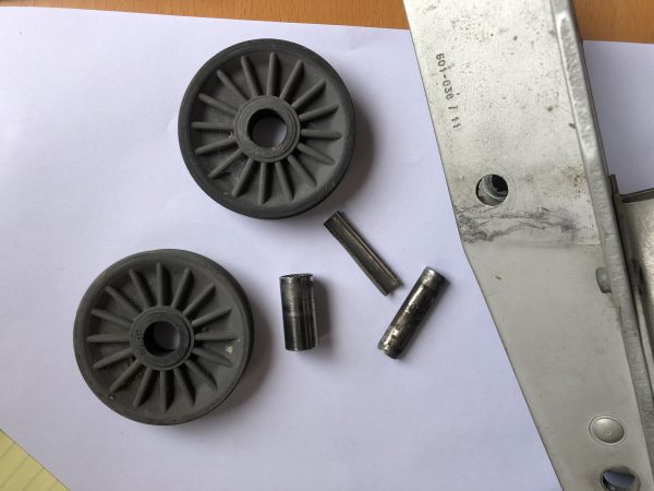 Jag köpte två nya trissor 70x12x13 Vilket är 70mm i diameter, 12 mm hål (i stället för 14mm som var original) och trissans bredd är 13mm.