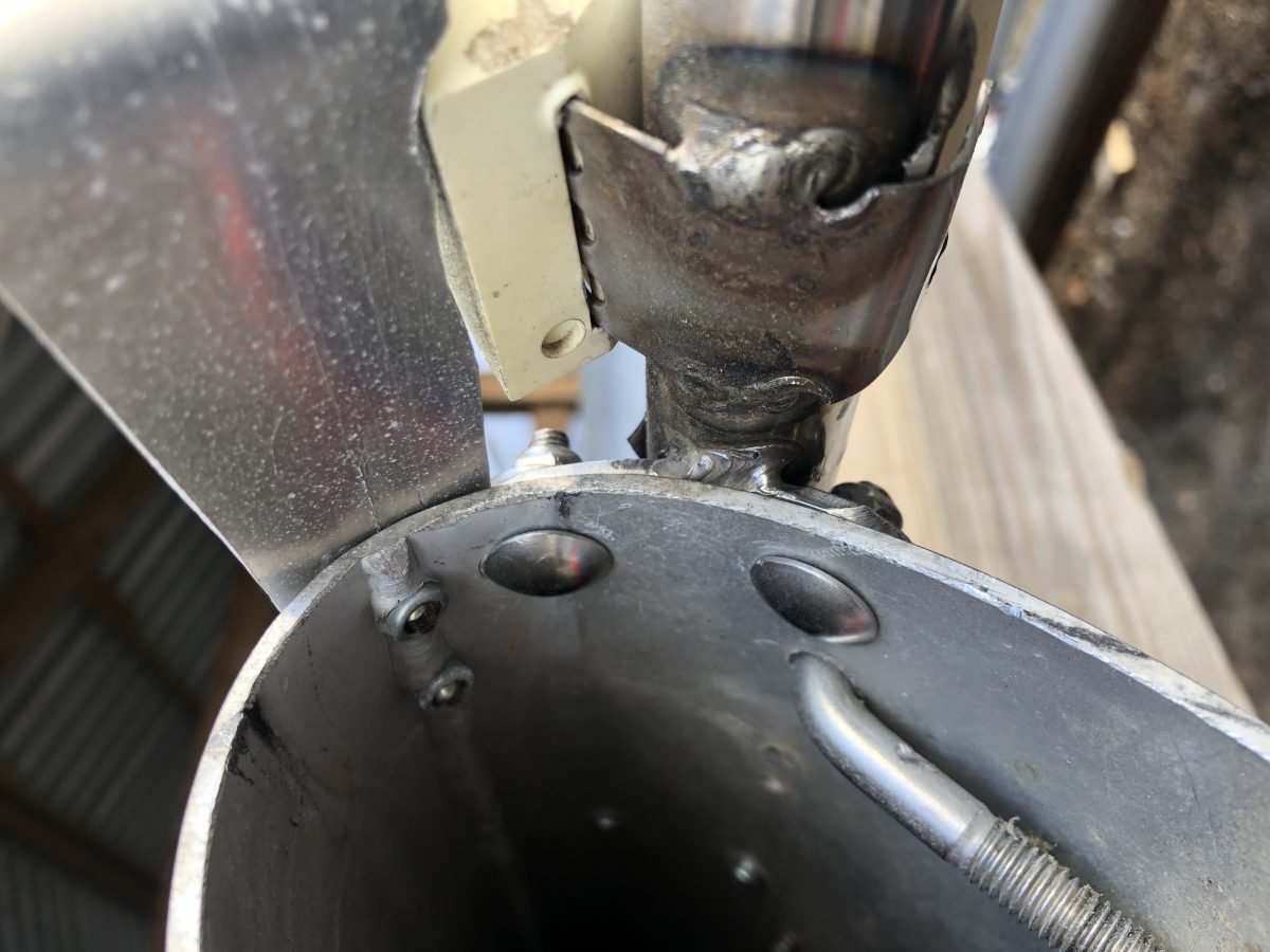 Jag tog därför bort hela masttoppsbeslaget för att finna en annan lösning. Det skulle inte ens gå att få dit en pop-nit.