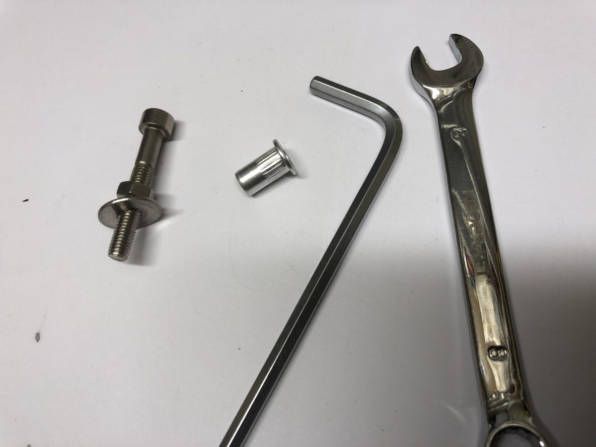 Jag har dock ingen tång för att dra fast dessa och det kändes onödigt att köpa en för endast 4 nitar så jag provade en egen metod att expandera niten genom att mot-dra en mutter.