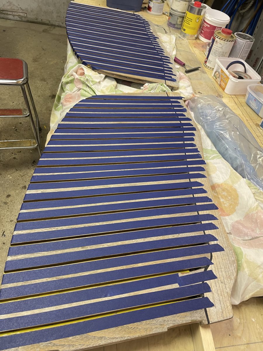 Det visade sig att nåten släppt i kanterna på många ställen så jag skrapade ur allt löst och slipade i nåtspåren. Nåtade om allt och nu med nåt-tejp i botten för att bara få två ytor som nåten fäster i. Förmodligen har det släppt för att den tidigare nåten fäst mot tre ytor. De två kanterna och botten. Nåten är ganska djup på tofterna.