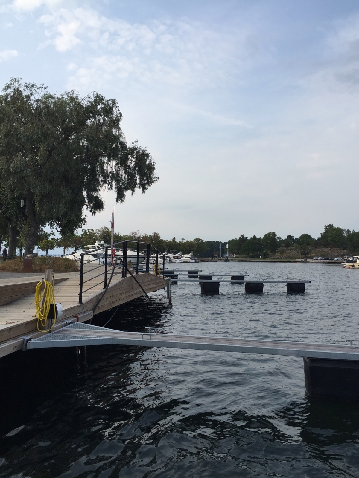 Fine! Alla gästbåtar i november får njuta av det nya servicehuset. Ponton och hus ligger tydligen halvfärdigt på kajen inne i stan.