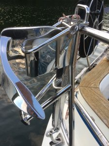 Efter att ha beslagit seglen i lä så styrde vi mot WSSW hamn på Notholmen där vi letade efter en grön-markerad plats. De två vi hittade var för smala så vi fick gå vidare mot den ”Nya” gästhamnen där tydligen Björn Ulvaeus varit inblandad. Åtminstone i det nybyggda hotellet på Slottsholmen.
