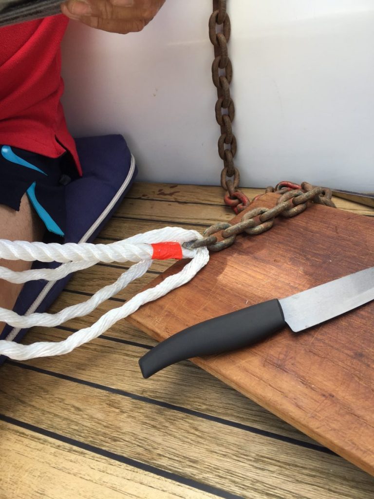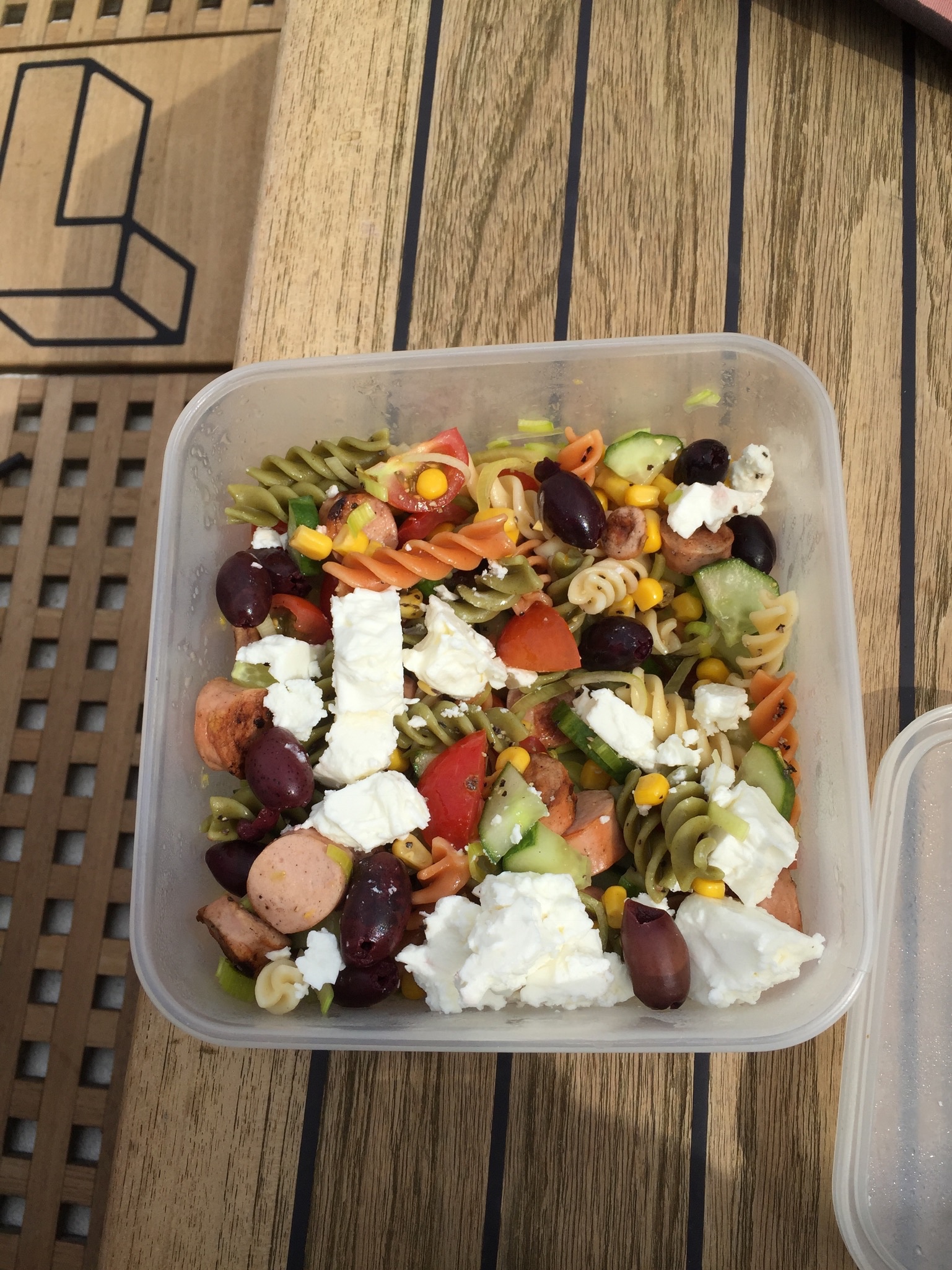 Efter Storkläppen blev det långa kryssben så då fick Rayan ta över styrandet i stället. Vi kunde ägna oss åt lunch i stället. Inte många båtar som seglar. Tror att vi bara såg en Passad som gick norr ut. Alla andra går för motor.