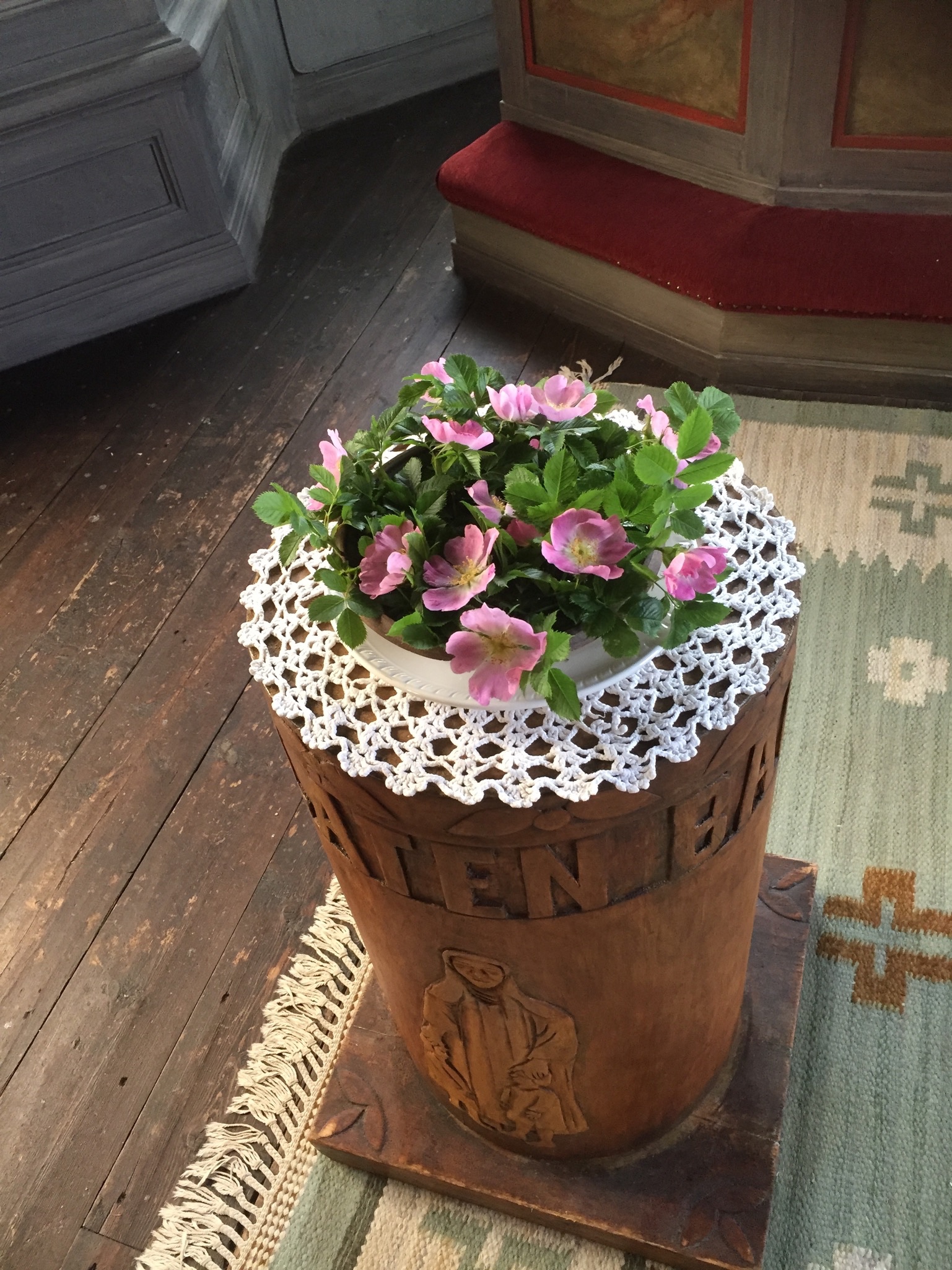 Vackra blomarrangemang runt fiskartorget