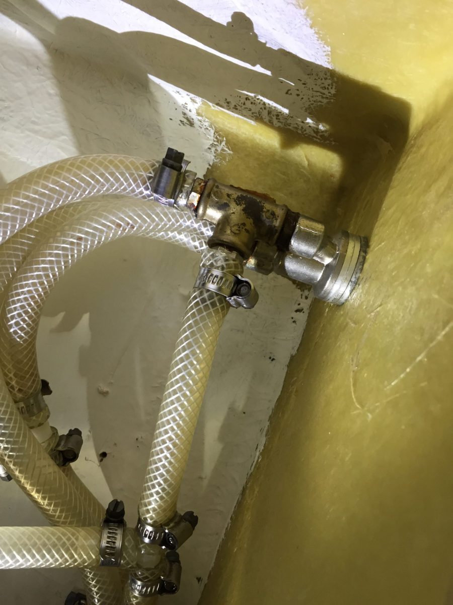 Det vart en del borrande med hålsågen vilket inte är lätt när det redan finns ett befintligt hål. Till slut var alla hål genom skotten i rätt dimension och de nya slangarna kunde dras i. Passade på att isolera alla slangar med strumpa och glasull. Ett nytt utblås i salongen monterades också för att få bättre fördelning av varmluften. Nu är det bara slangen kvar in till stick-kojen som skall monteras.