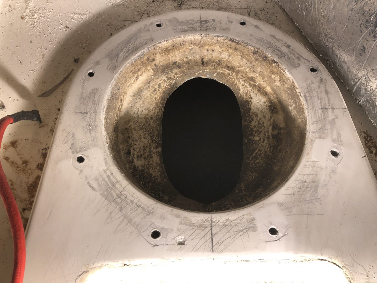 Jag tog därför bort hela masttoppsbeslaget för att finna en annan lösning. Det skulle inte ens gå att få dit en pop-nit.