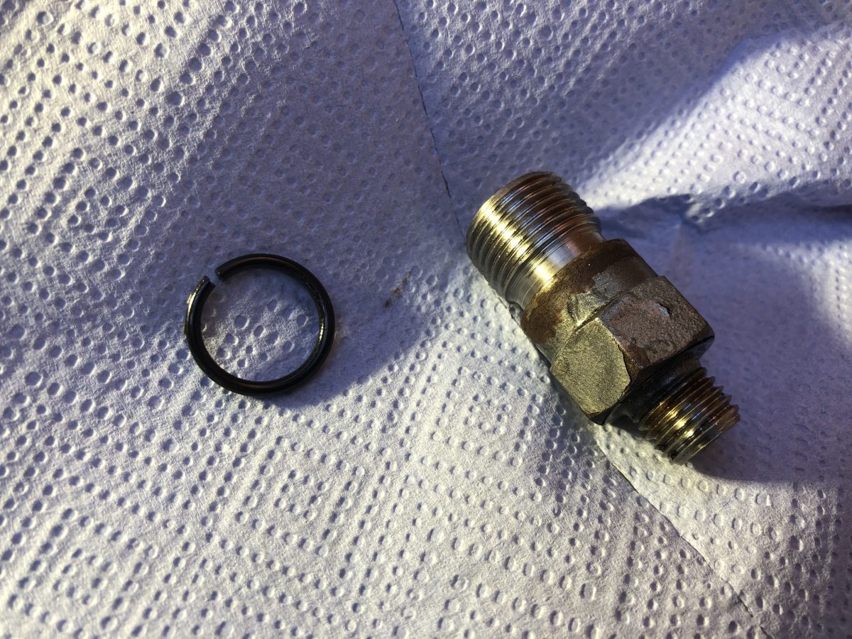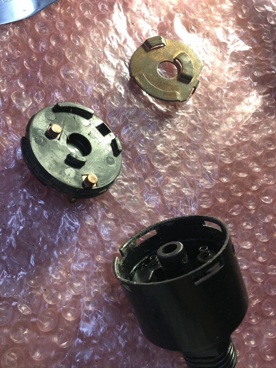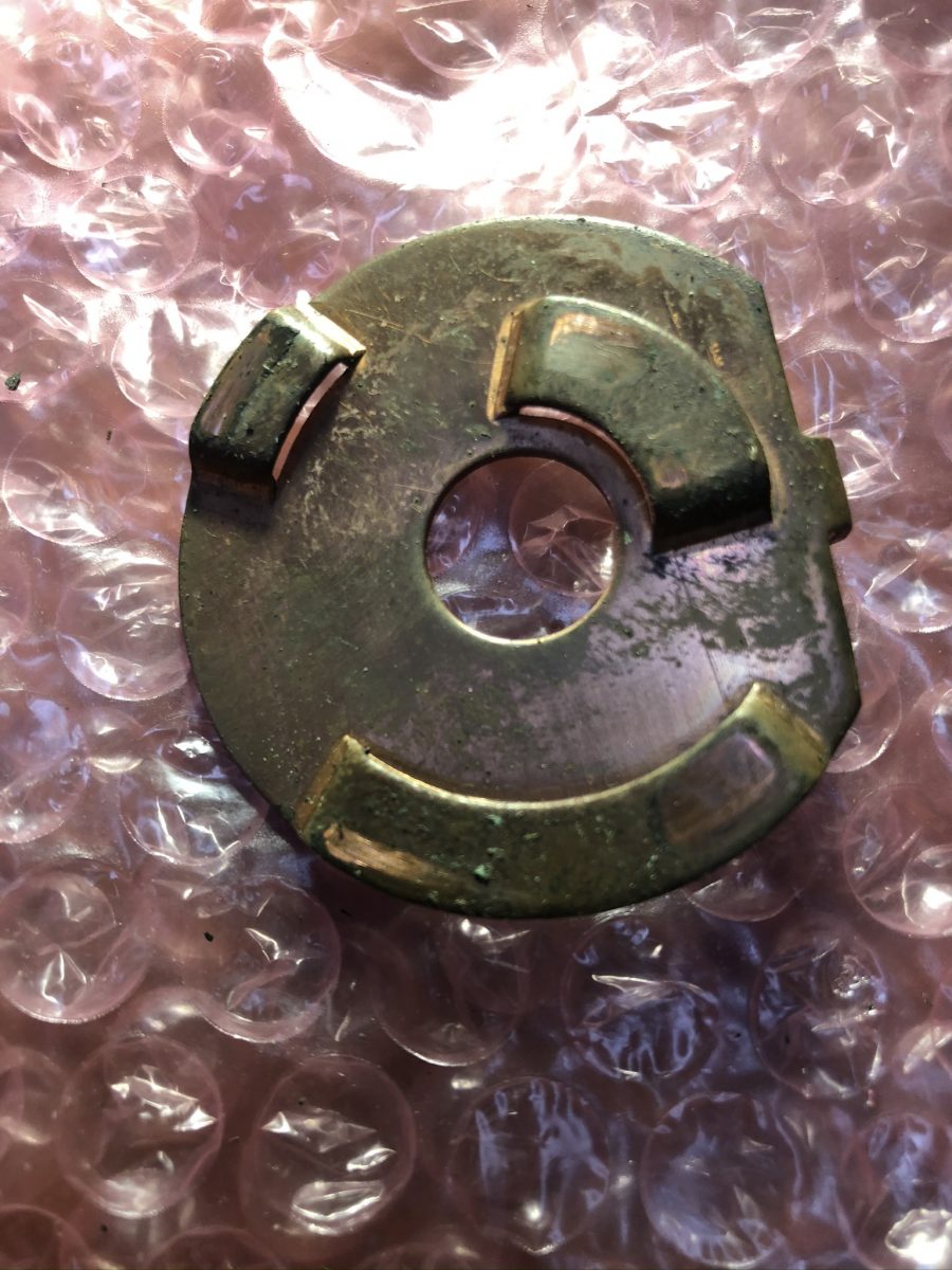 Ta bort gröna bussningen och därefter börja lägga dit de nya delarna. Först den kraftiga brickan som skall stödja hela lagret.