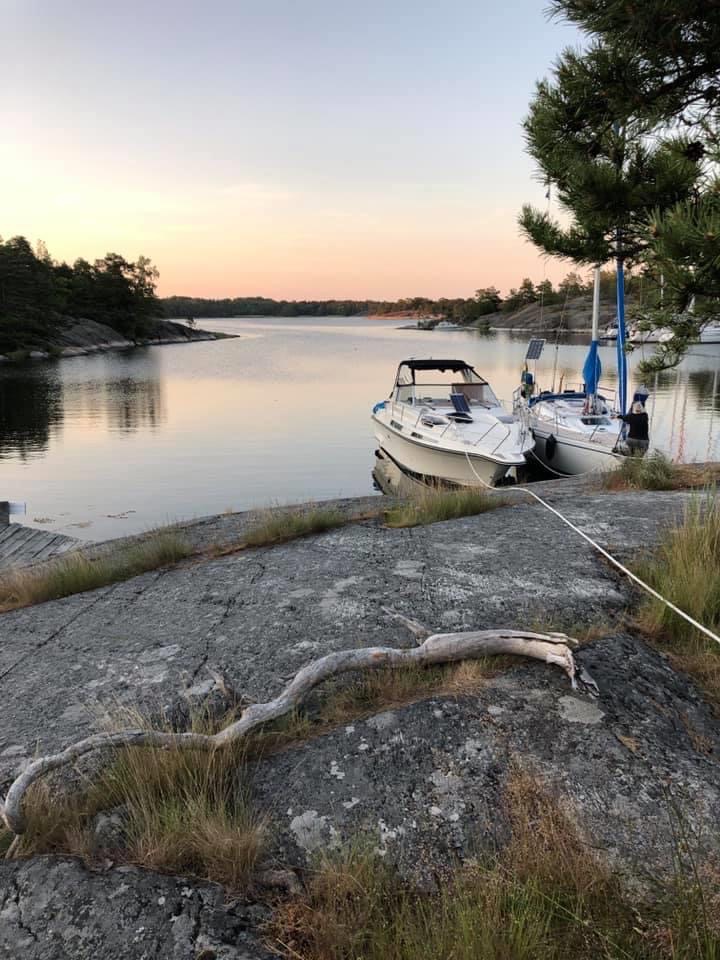För att montera dem på hjärtstocken måste den stora klumpen som man monterar rorkulten på, tas bort. Men det är den som vilar på gröna bussningen. Alltså måste rodret lyftas. Jag har gjort det tidigare. En tamp knyts i aktre knapen. Tampen leds ner under båten och får sjunka. Därefter försöker man dra upp tampen på andra sidan och få den att fastna under roderbladet. Efter några försök så satt tampen rätt och med vinschen på ena sidan kunde jag lyfta hela rodret.