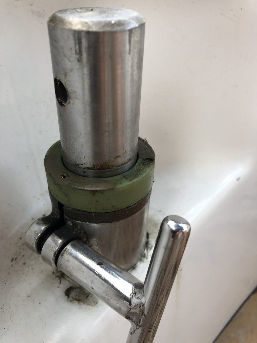 Jag har tidigare gjort en bussning som hela rodrets tyngd vilar på. Jag använde då ämnen som jag redan hade. Tyvärr i materialet Oilon som kanske inte är det allra bästa. Nu ”knarrar” det ganska mycket om detta lager